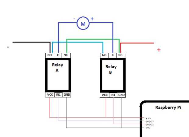 Para ello he utilizado dos relés de canales n.2. Como se puede ver en la foto, normalmente cerrar posición para ambos se debe conectar a la salida positiva de PS. Posición a la salida negativa PS normalmente abierta. A continuación, puedes ver que, sin señal fm frambuesa, ambos relés son NC. Si alterna señal a relés, tendrás inversión de polaridad en el motor de machanism de láser.