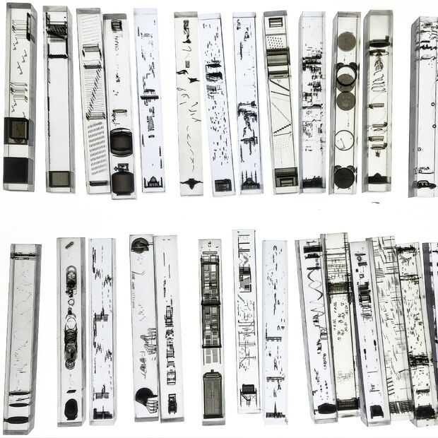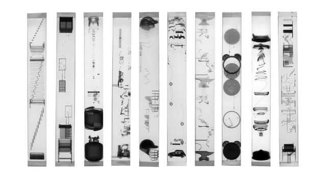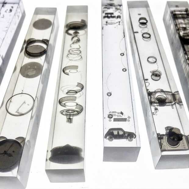 Las fotos arriba son impresiones de resina 3D de mallas que han sido transformados para ilustrar el proceso en que se han convertido de modelos no triángulo por un algoritmo de engrane. En la base de la impresión es el modelo de entrada (un coche, casa o mecanismo, por ejemplo) y por encima es la versión "transcurrido tiempo" o esquematico del modelo con el tiempo (o, más exactamente, índice del triángulo) en la dirección Z.