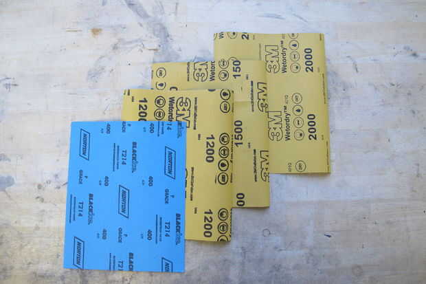 Comenzó con grano 320 y me fui todo el camino hasta grano 2000 con papel de lija húmedo/seco y abundante agua. Acabé con el bruñido y rouge compuesto. Encontrar la mejor manera de mostrar las impresiones está en una mesa de luz donde se puede apreciar todo el detalle.
