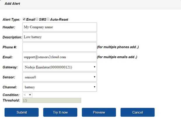 Queremos añadir una alerta y queremos recibir un correo electrónico si el nivel de la batería cae por debajo de cierto valor
