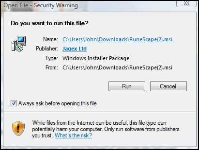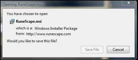 Una vez hecho clic en el enlace para descargar al cliente de runescape que se enfrentarán con una ventana que se verá un poco así puede ser ligeramente diferente dependiendo de qué sistema operativo se está ejecutando, estoy corriendo vista por lo que mi ventana se ve así.
