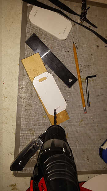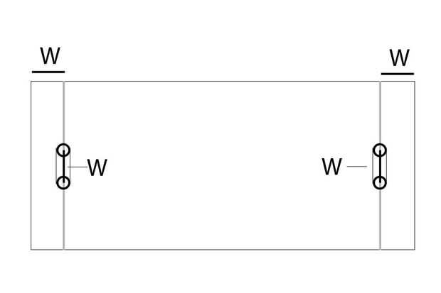 Medir el ancho de un (grabar como "W") de su gancho y lazo (o correa del clip del dedo del pie) de cada extremo de rectángulos de plástico y dibujar una línea la altura del rectángulo en que ancho (segunda foto). Encuentre el centro de cada una de estas marcas y marcas la mitad del ancho de su gancho y bucle tiras o correas del dedo del pie-clip a ambos lados de la marca, luego perfore los agujeros en cada extremo (tercera foto) por lo menos el espesor de la hoja del PVC y corte la caída entre los agujeros (sería algo así como el diagrama en la cuarta imagen.)