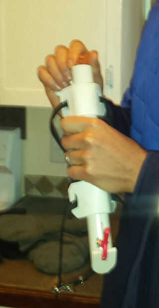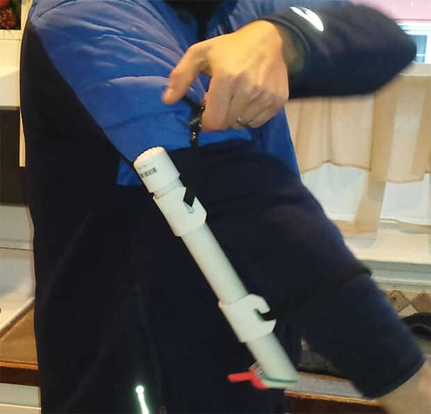 Fill'er hacia arriba y poner la tapa, entonces correa a su antebrazo o bíceps una vez que has puesto en la mayoría de su ropa (excepto los mitones o guantes que hizo esta cosa necesaria.) Tomar a su animal compañero de paseo y cuando él hace algo justo, taza de la mano por debajo de la puerta tratar y empuje el brazo de la abrazadera por encima de la bisagra, y una delicia debe caer justo.