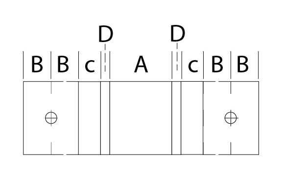 Necesitamos estas medidas para hacer la plantilla para el lado del tubo de la bisagra de tratar. Puede ser mejor calado esta en primer lugar, como en la imagen 3 Diagrama de aquí, pero si te sientes valiente, corte * una pieza de aluminio (A + 4B + 2 C + 2D) unidades de largo, luego taladre dos agujeros en el centro-ancho de la barra, las unidades B de cualquiera de los extremos.