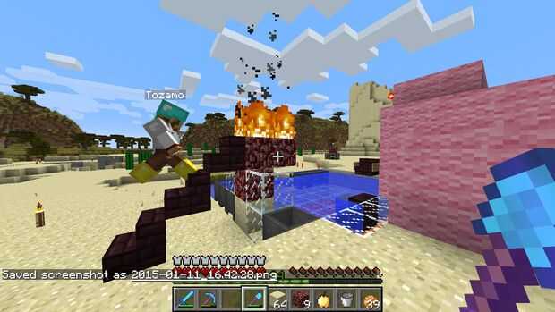 Acumular, conseguir prendieron fuego, saltar a la piscina de abajo. :-D