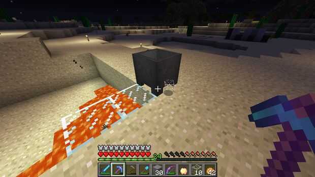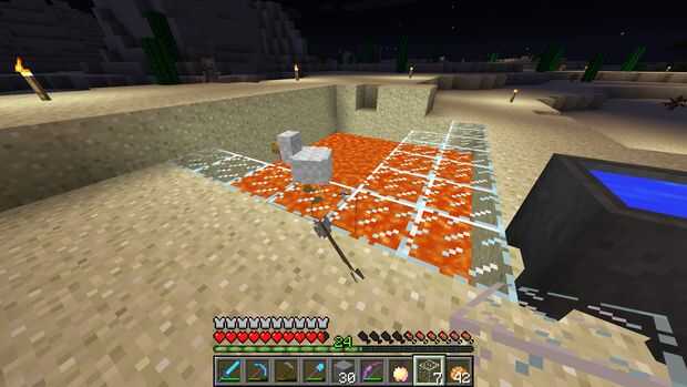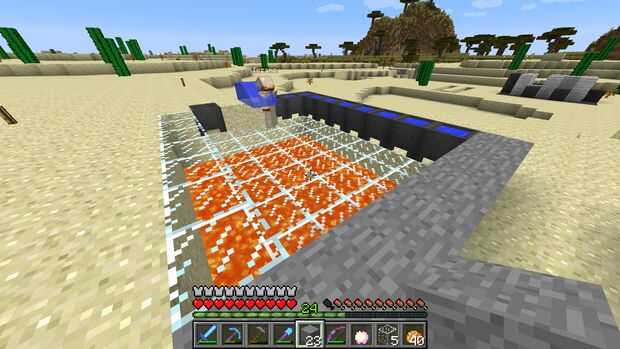 Para hacer las cosas un poco más seguro, cogí unos cuantos bloques de vidrio primero, y una vez que la lava estaba en lugar pongo el vidrio sobre la parte superior antes de ir a rellenar mis cubos. Pensando en ello, trabajo durante el día pudo haber sido más seguro!