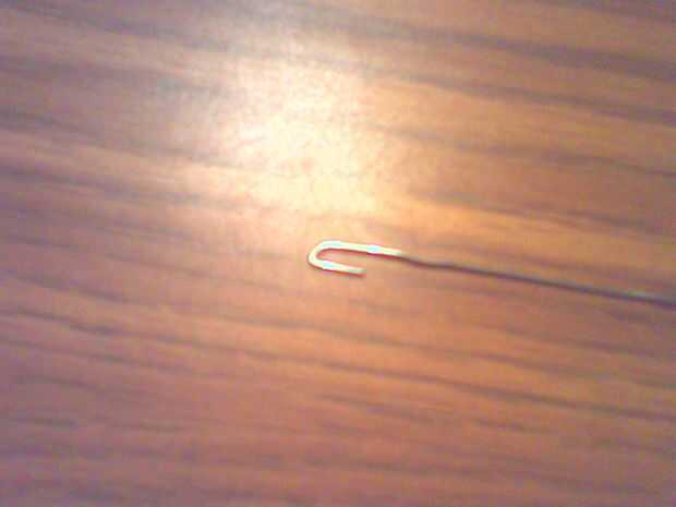 Ahora un extremo de la presilla del lazo como se muestra en la imagen. * Usé un lazo pequeño para este clip porque tenía un par de pinzas a mano.