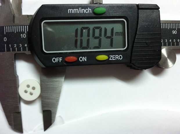 Tomar el botón de su camisa y medir el diámetro, espesor y diámetro de los agujeros. Esto tiene que ser exacta. Doblé todas las mediciones a medio milímetro más cercano.