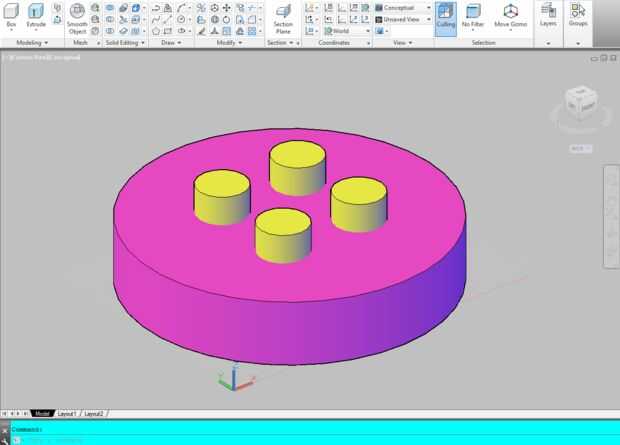 Utilizar sea cual sea su programa de CAD utiliza para sustraer el cuatro cilindros más pequeño desde el botón de comando.