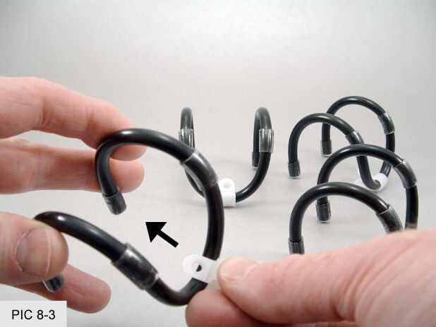 Coloque las abrazaderas de cable en cada uno de los clips. (FOTO 8-3) La abrazadera debe estar en el centro de la curva del clip. (FOTO 8-4)