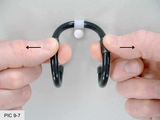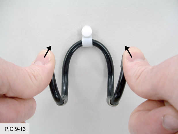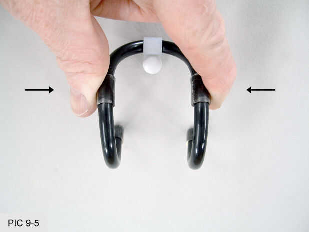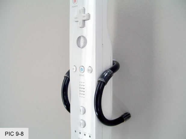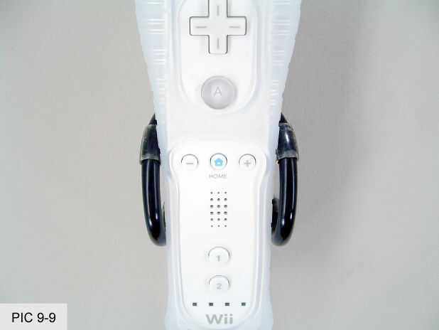 Coloque el clip en la pared como un "clip". Aprete los topes hasta que estén sobre 1-3/8 de pulgada aparte. (FIG 9-5) Empuje el regulador en el clip y ver cómo encaja. Quieres un férreo control, pero no tan fuerte que es difícil de insertar y quitar. (FOTO 9-6) Si es demasiado difícil empujar en el clip, ampliar un poco el agarre tirando los topes aparte. (FOTO 9-7) Si es demasiado flojo, apretar más. Asegúrese de que los topes se ajustan para comunicarse con los lados del controlador. (FOTO 9-8) Nota: Si tienes una "piel" en tu mando de Wii y no tienes que apretar tanto. De hecho, piel de "stock" de Nintendo no requiere ningún ajuste. Sólo empujarlo pulg más sobre eso aquí. Para otros aspectos, la prueba para ver cuánto ajuste es necesario antes de la contracción inicial. (Foto 9-9)