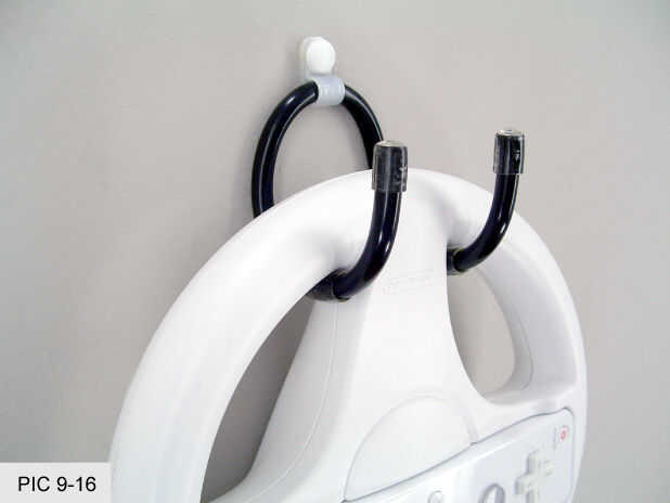 Controladores de volante cuelguen por la rueda. Coloque el clip en la pared como un "gancho". Cuelgue el controlador. (FOTO 9-16)