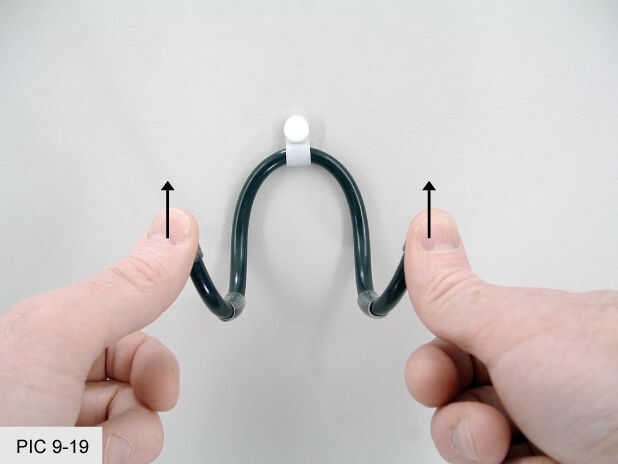 Coloque el clip en la pared como un "gancho". Coloque el controlador en el clip. Probablemente no encaja en el gancho. Tirar de las patas hacia usted hasta que comience a montar. Extendido las piernas por lo que se sitúan a las afueras del D-pad y el stick. Extendiendo las piernas, apoyar la parte inferior de la pinza con los dedos índice, tan sólo las piernas giran hacia el exterior. (FOTO 9-17) Para un agarre firme, quite el controlador y empuje las patas hacia adentro un poco para que aplique presión contra el controlador. (FOTO 9-18) Vuelva a colocar el controlador de prueba. Ajustar por consiguiente. (FOTO 9-19)