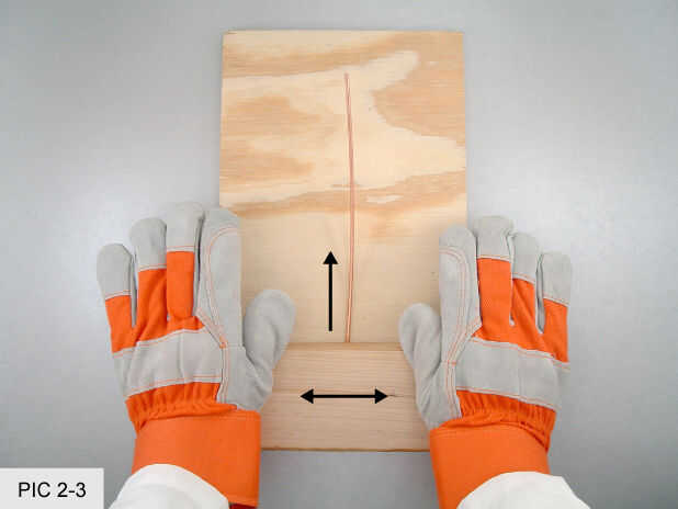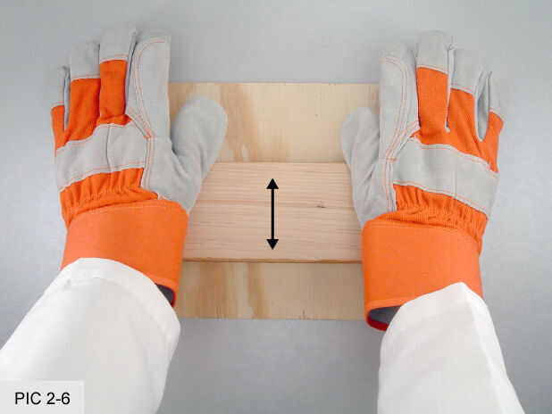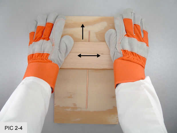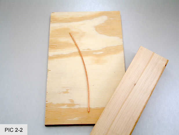 Vuelva a colocar la tabla a lo largo del alambre. (FIG 2-5)) Aplique presión en el alambre y empujar la tabla hacia adelante y hacia atrás. (PIC 2-6) Debe sentir el cable rodando debajo de la madera. Si no es así, deberás volver a (2) y trabajar en las grandes curvas.