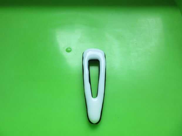 Aplique una capa delgada de pegamento sobre la parte superior del clip. Asegúrese de que no es demasiado para que no gotee sobre el lado.