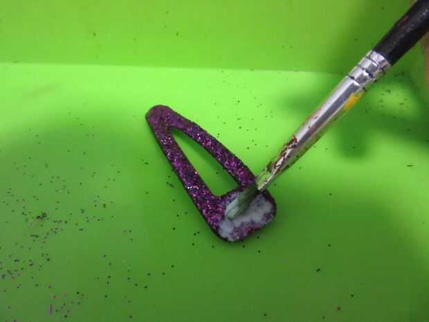 Una vez que el pegamento se haya secado, aplique una capa ligera otra capa de pegamento sobre la parte superior. (Creo que claro esmalte podría funcionar, pero nunca he probado). No pongas demasiado, o bien no muestra el brillo y feos blanco grumos de pegamento podrían formar.