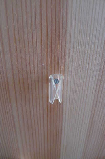 Montar el clip en la pared. Asegúrese de que se reserva espacio suficiente para permitir que el cable cuelgue hacia fuera libremente. Si el montaje en una pared de piedra o yeso necesitará un enchufe (uso de los más pequeños se pueden encontrar). Alternativamente, uno puede definir una serie de abrazaderas en un tablero como coathooks y atornille la pieza de madera a la pared (esta alternativa no se muestra en este instructable).