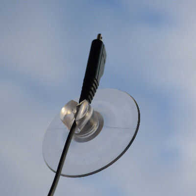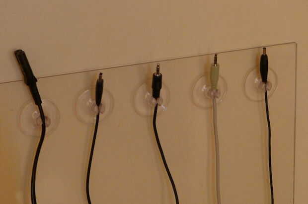 Encontrar una ventana, un azulejo u otra superficie lisa conveniente y limpiar con jabón para desgrasarlo. Humedezca la ventosa y pegarlo sobre la superficie. Asegúrese de que se reserva espacio suficiente para permitir que el cable cuelgue hacia fuera libremente. Alternativamente, meter una serie de clips de lechón en una fila.