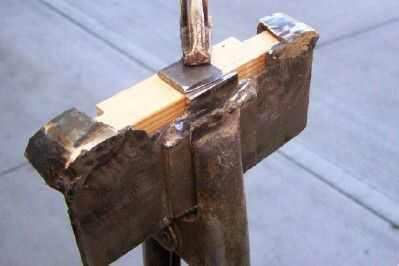 Corte los extremos de una pieza de 3/4 x 3/4 pulgada por lo que encajarían en los extremos de los bolsillos de la esquina. Puse un pedazo de acero 1/8 x 3/4 x 3/4 pulgada en la madera para sostener que mientras que la tachuela soldada con autógena. Una vez terminadas las tachuelas, retirar la madera y acabado de la soldadura. Hacer otra pasada asegura la suficiente fuerza. Moler la soldadura suave.
