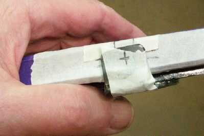 Puso cinta adhesiva en la parte superior de la pestaña superior. Luego le puse el teléfono en el cinturón. Con la ayuda de las líneas de la última etapa, pude localizar el centro del agujero para el tornillo como la punta que tiene el teléfono en el cinturón.
