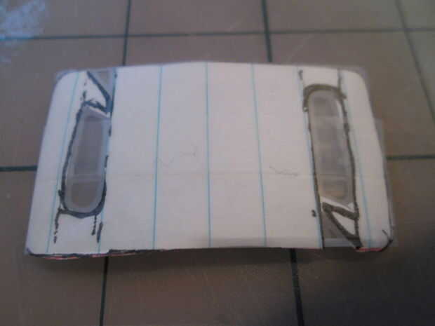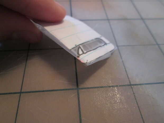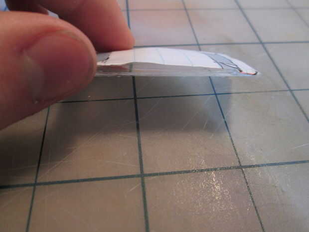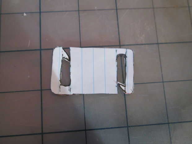 En orden para que funcione como un clip, la lupa tendrá que ser cortado para que la cadena del collar se puede deslizar y apagar, pero no por lo que puede caer. Opté por añadir algo de gancho/labio en el bosquejo de la mina (que era del mismo tamaño que mi vaso, como había trazado anteriormente), y transferí ese sketch en la lupa sí mismo a través de la cinta.