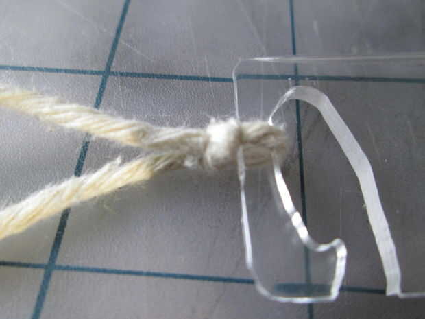 .. y el nudo se necesita primero seremos lo slipknot. Después de atar lo slipknot, deslice el lazo grande sobre el clip y apretar para que tome un poco de un tirón a bajar, pero que usted puede todavía sacar después de que ha puesto! Cuando usted ha encontrado este "punto de oro", un nuevo nudo para mantener la slipknot resbale.