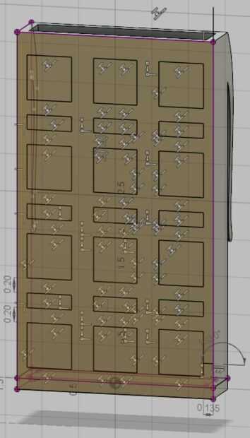 a) iniciar un nuevo dibujo en el plano frontal (plano X-Z en este ejemplo) para decidir el diseño personalizado que desea eliminar de la zona frontal de la impresión (y posiblemente la parte posterior del caso) para no sólo ahorrar dinero durante la impresión (desde modelo material es más costoso que apoyo material) sino también para asegurar que el producto final es ligero pero robusto. Utilice el comando cortar para quitar el material de la extrusión inicial.