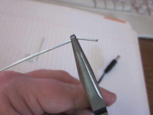 Ahora que hemos hecho el clip externo, sólo tenemos que hacer un cable interno para conectar en el interior de la clavija coaxial. Probablemente deberás usar un clip más pequeño, tamaño normal para esta parte. Debido a la necesidad de que sea lo suficientemente elástico para mantener la tensión contra las paredes internas del enchufe coaxial, vamos a necesitar al menos una curva de 180 grados, así que el diámetro de alambre de clip tendrá que ser lo suficientemente pequeño como para caber doblado dentro de la zona de enchufe coaxial interior.