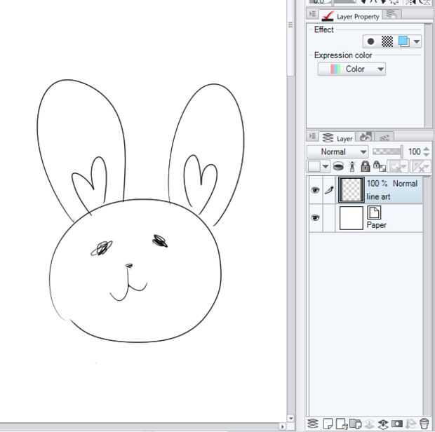 Capas y efectos de capa son vitales para la tonificación en la pintura de estudio de clip. Aquí está un boceto rápido que hice en una capa nueva por encima de mi capa base. Si os fijáis a la derecha, puedes ver los detalles y el desglose de cada capa y sus efectos. Cuando no sé lo que significa un icono en el estudio de clip, sólo pasa el cursor sobre él y lo voy a decir para qué sirve cada herramienta.