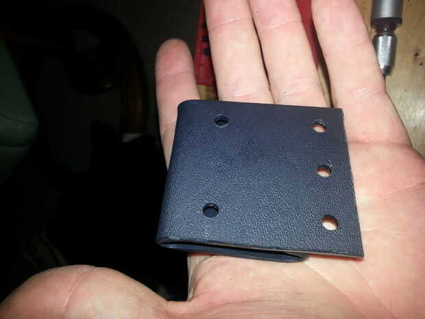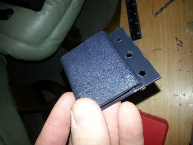 Taladro como hiciste antes. Tienes la opción de pasar por ambos lados del clip o sólo uno. Normalmente la base esta en la longitud de tornillo de Chicago que estoy usando y si sería manejable para poner la base en el clip o si la base es demasiado larga añadir y agujero adicional exterior.