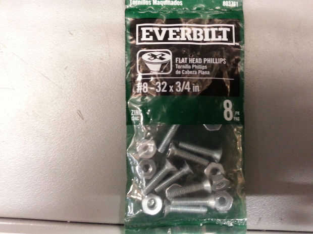 E. 4 unidades. plano de 3/4 "x 8-32 tornillos de cabeza (Home Depot $2.)