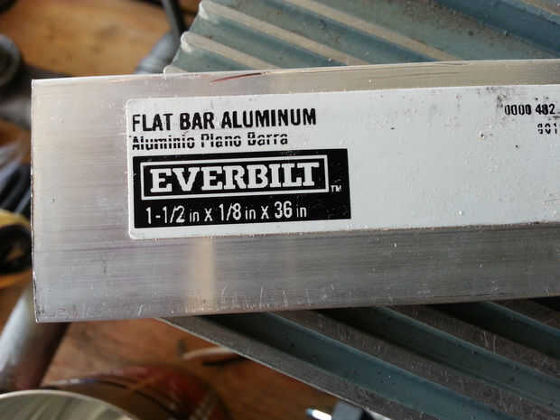 B. 2 pzas. 1/8 "x 1-1/4" x 3" aluminio plano común. (Home Depot $9.)