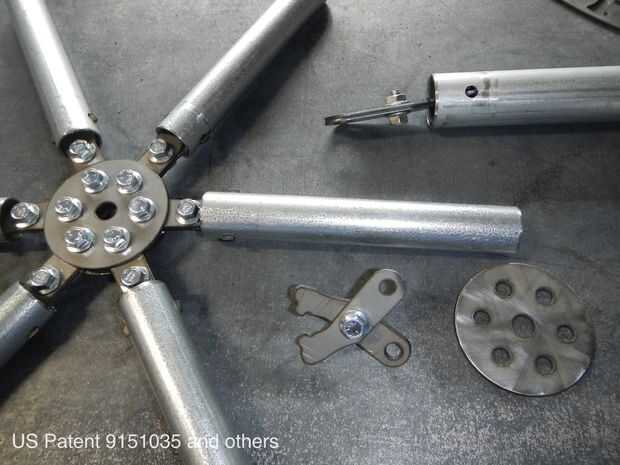 Actualización 11/12/15 las fotos ahora muestran el nuevo clip de acero inoxidable tijeras hecho con un proceso CNC que es más fuerte y más universal para marcos de puntal que el clip de resorte. El agujero del pivote se puede ajustar fácilmente para adaptarse a cualquier tamaño de tubería o tubería cuadrada de PVC, aluminio o metal. Hemos utilizado estos para sustituir y ampliar extremos del conducto roto que se utilizaban en evento cúpulas debido a muchos sistema ups y downs toma. Los puntales se guardan y el nuevo auto alineación de conexión está instalado fácilmente. No es necesario para calcular ángulos de puntal geodésico ya que una vez que el cubo se fija con pernos sólidos en relación con todos los puntales conectados se alinean entre la colocación del eje.