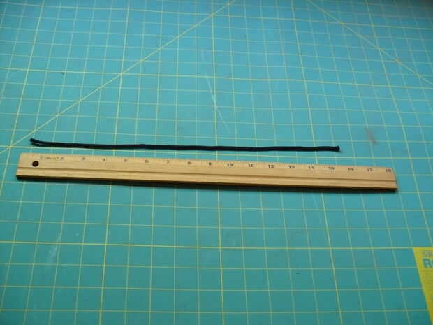 Primero, corte una longitud de cable. La mía es cerca de 15 pulgadas ya que tengo una botella de agua de boca grande. Si sólo lleva una botella de almacén comprado o una bebida deportiva puede utilizar cerca de 10 pulgadas.