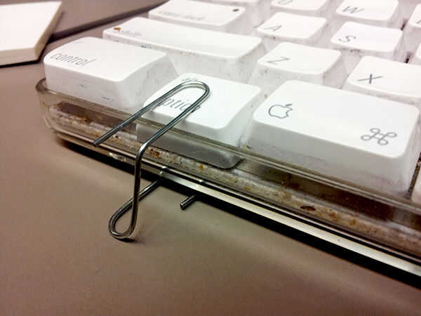 Después de tu Mac que su inicial "bong", deslice el clip de papel entre la tecla de opción y la parte inferior del teclado.