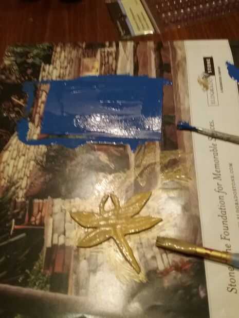Pintura con varias capas de pintura de oro y dejar secar entre capa y capa.