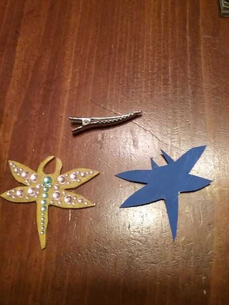 Pegamento caliente los cocodrilo pelo clip largo caminos a través de la parte inferior de la libélula.