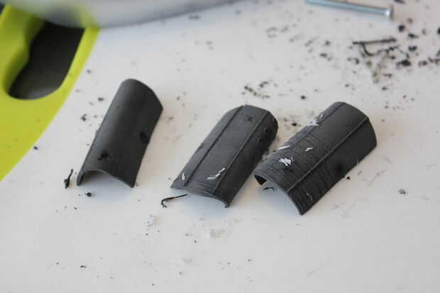 Corte a los topes de goma de forma 3. Usted puede cortar más o menos como esto afectará el ajuste - cojines más permitirá apretar más fuerte.