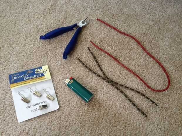 Clips (este ejemplo utiliza clips encontrados en una tienda de hobby, aunque se venden clips similares Unidas a anillos para cortinas de baño) - pieza que se muestra es Darice Dangler Clips níquel BV del artículo 1969-99. Pueden utilizar pinzas de cocodrilo, pero no he podido encontrar unos me gustaba que eran bastante pequeñas pero tenía un resorte fuerte.