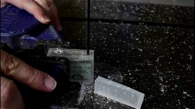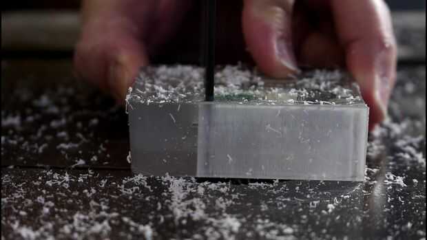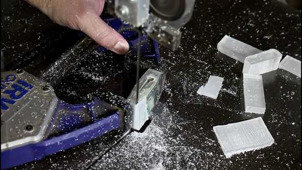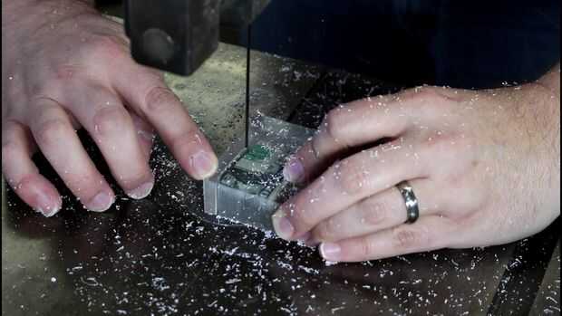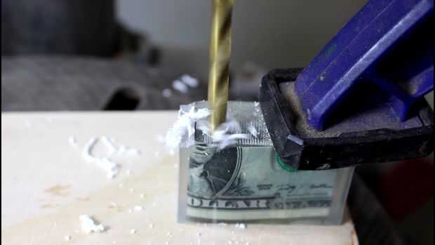 Tomé el bloque a la Sierra de banda para hacer unos cortes a cada lado de la cuenta. Aquí le damos la razón para ello. Cuando que el dólar no era perfectamente centrado o directamente en el molde. Si he intentado hacer un agujero para el extremo más grande del clip, no centrado y puede venir a través de uno de los lados. Si usted puede manejar un bastidor perfectamente recto, puede omitirse este paso.