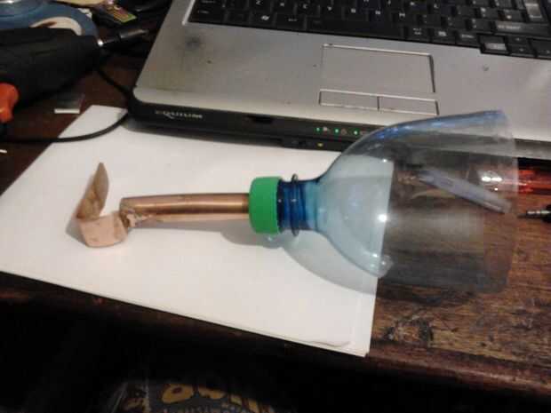 El megáfono es una botella de plástico de bebidas a tu tamaño deseado, experimentar con diferentes longitudes y formas de cono como cambia el tono. También probé el metal cono de una bocina de bicicleta pero no se realizó así como la botella de plástico. La cápsula se perfora hacia fuera a 14mm y el tubo de 15mm es simplemente un pulsador ajuste. el tornillo de la tapa también también para experimentar con diferentes botellas sin tener que pegar y sin pegar al tratar de cono diferentes longitudes y formas.