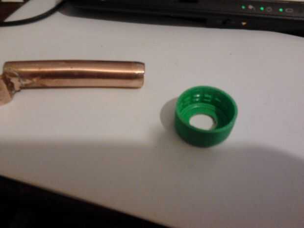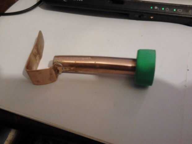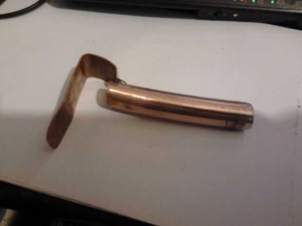 He utilizado trozos de tubo de cobre para hacer el tubo de sonido y el clip, el clip fue cortado de un tramo corto de tubería que se dividió longitudinalmente con tijeras y abría y martillado plana.
