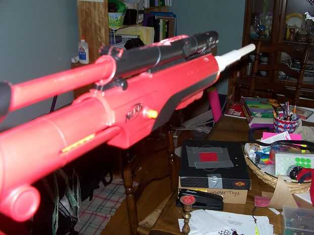 Paso 1: Lo que necesita: Necesita una pistola de nerf, clips, pinzas, tijeras y un dardo nerf.Paso 2: Paso 2! Doblar los clips de papel como esta con los alicates.Paso 3: Unirlo Conducto cinta los clips de papel.Paso 4: El dardo Tire de la parte supe