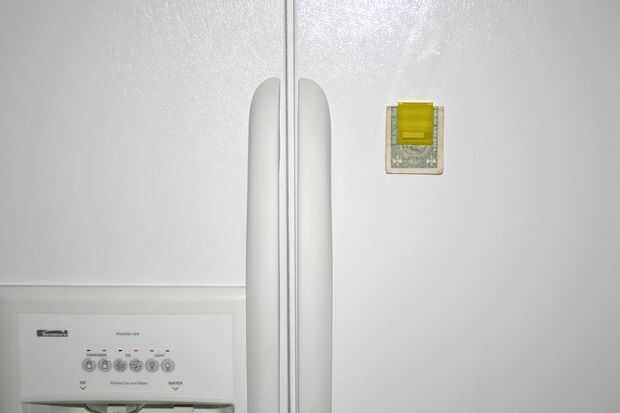 Puede quitar el clip del dinero de su bolsillo y colocarlo en la nevera o en un gabinete del archivo.