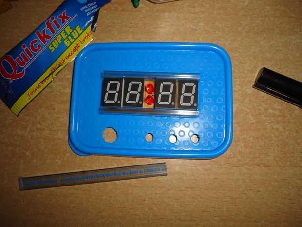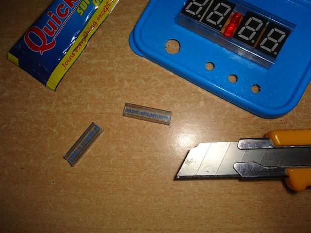 Porque los siete segmentos solo buscaban atroces, así que utilicé algunos recipientes de plástico chip smd para crear el muro alrededor de los displays de siete segmentos.