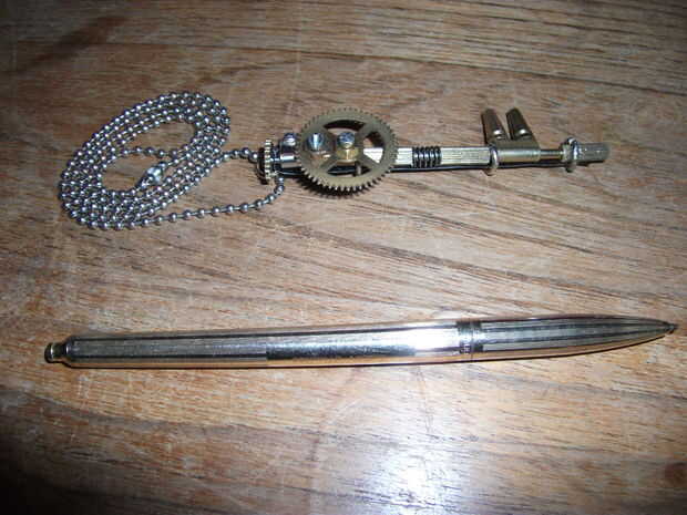 en este tutorial creamos un pequeño clockpunkpen hecho con piezas de un reloj. La pluma está diseñada como una clave. y pueden ser usados como collares.