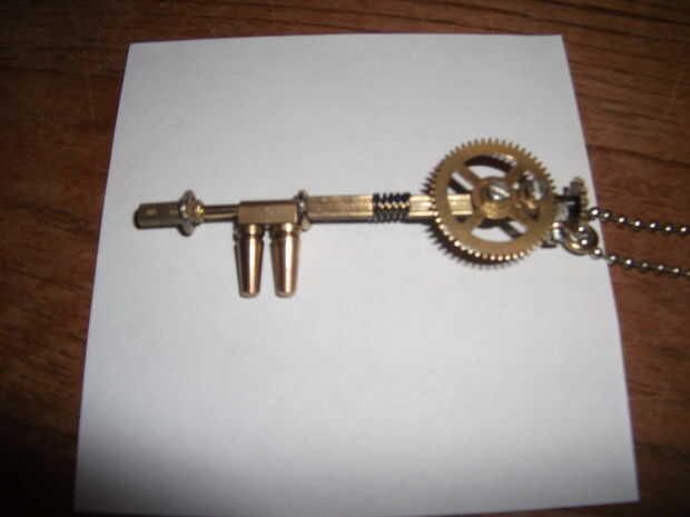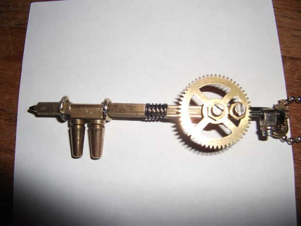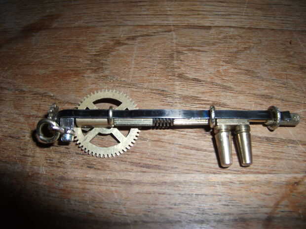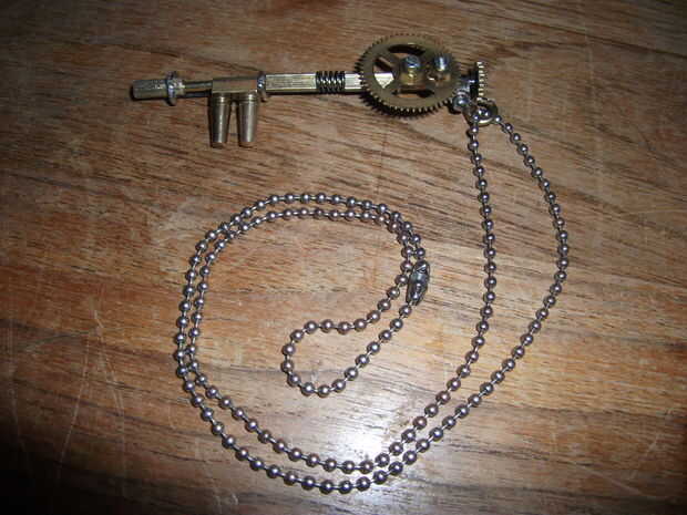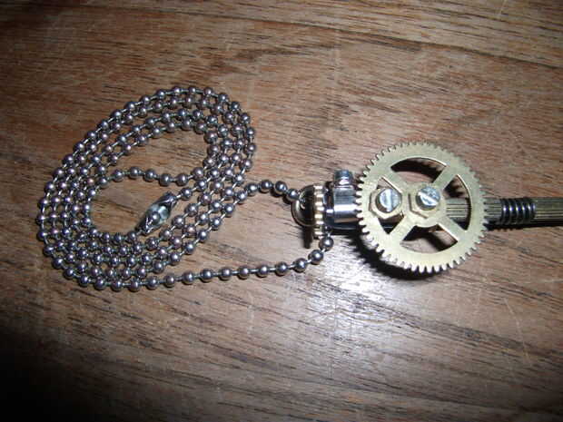 doblar para el otro agujero, un anillo de latón, donde encaja una cadena.