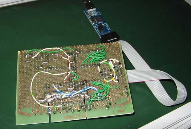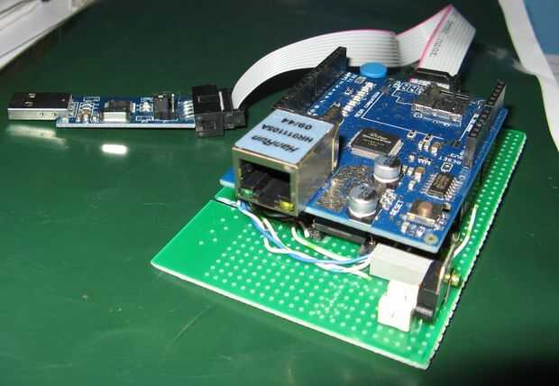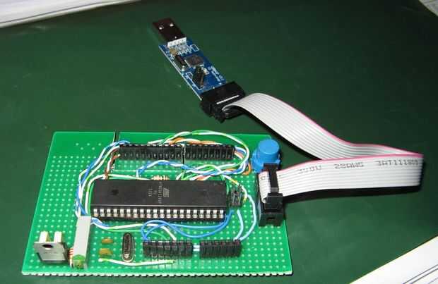 Vue de dessus avec l'USBasp connecté pour la programación.