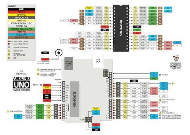 Plan de l'Arduino UNO Junta pour réaliser le clon en respectant les fonctions des bornes.