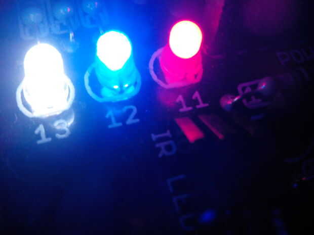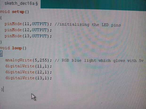 Como se puede ver el resplandor de luces de LED 3 y un color en brillo luz RGB... a subir el código y sólo lo básico... a diferencia de arduino no necesitará conectar LED externos a induino.